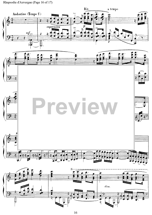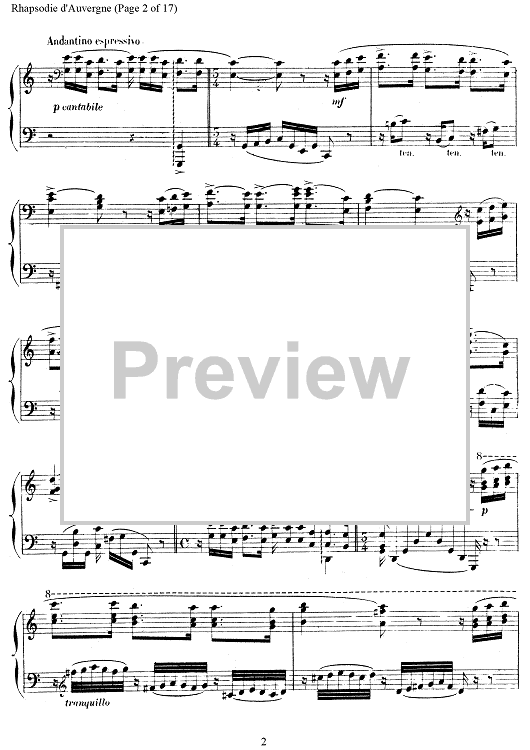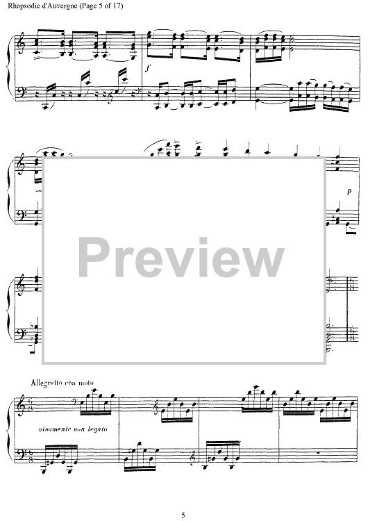 Digital Sheet Music for Rhapsodie d'Auvergne by Camille Saint-Saëns scored for Piano Solo; id:500536