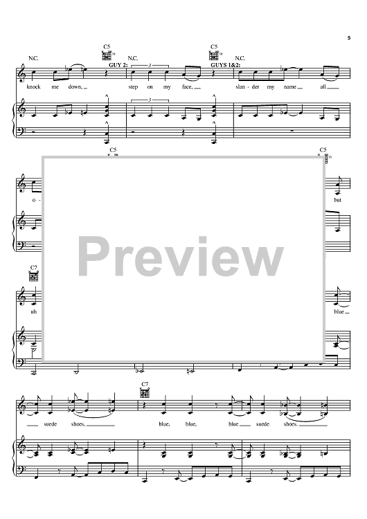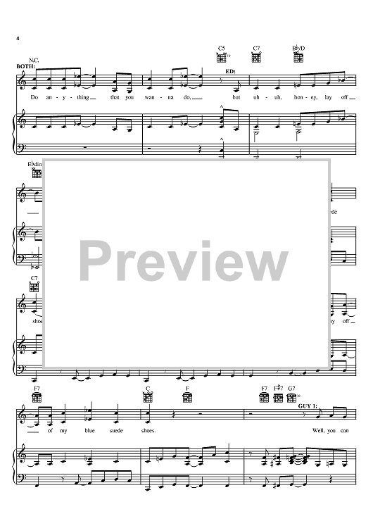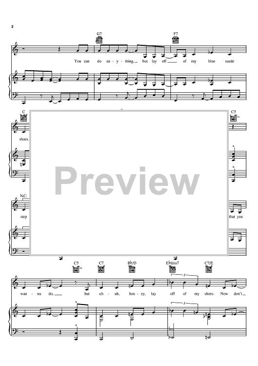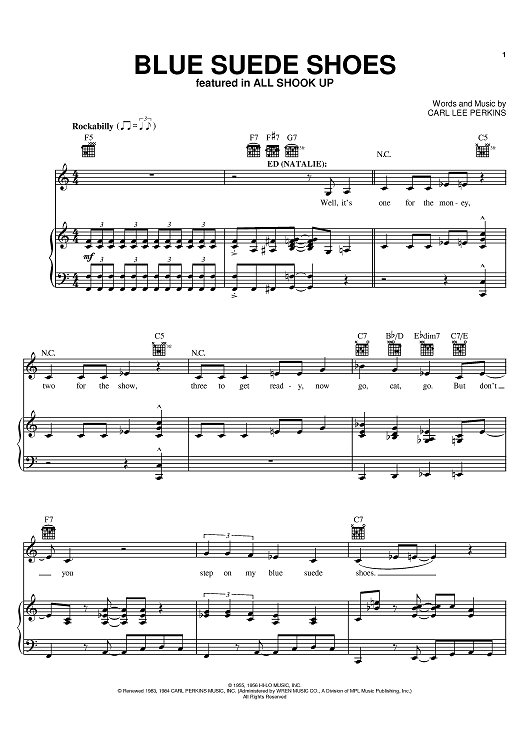 Digital Sheet Music for Blue Suede Shoes by Elvis Presley, Carl Perkins, Carl Lee Perkins scored for Piano/Vocal/Chords; id:394132