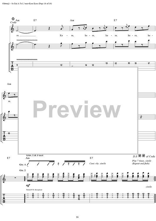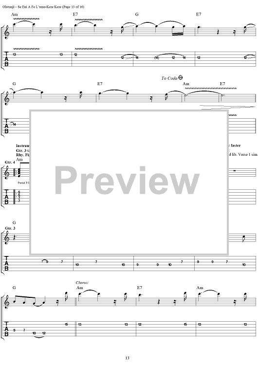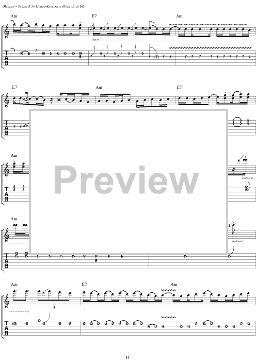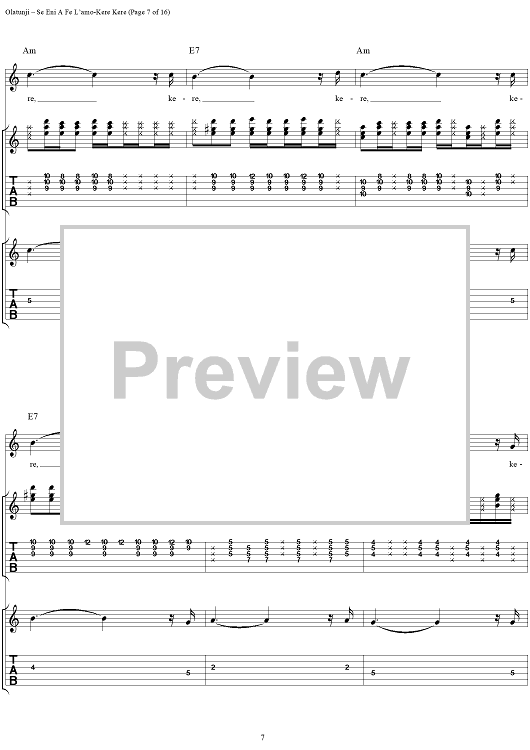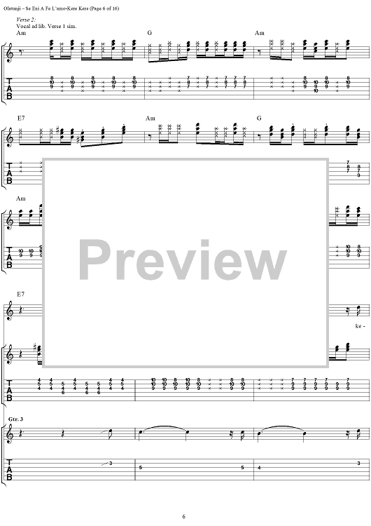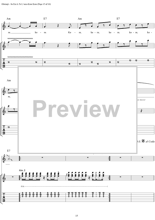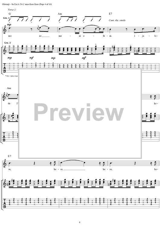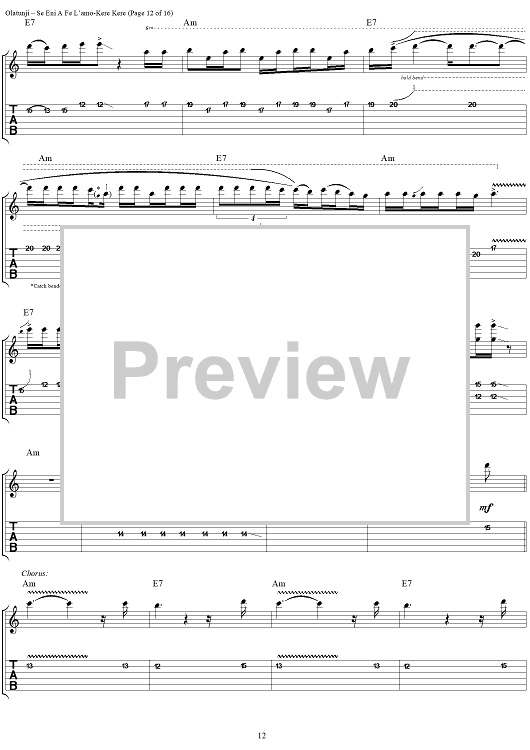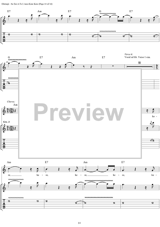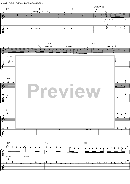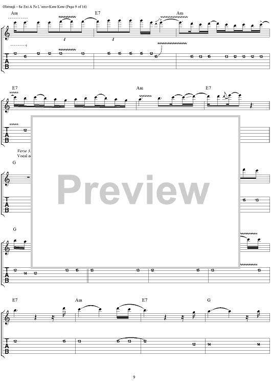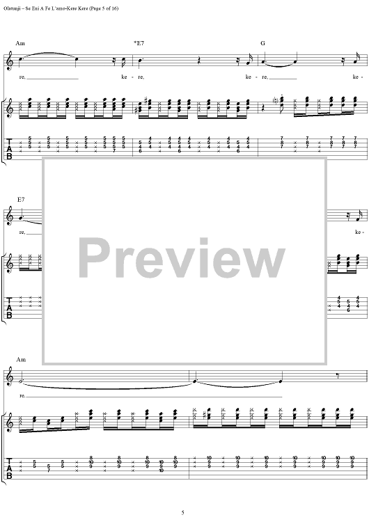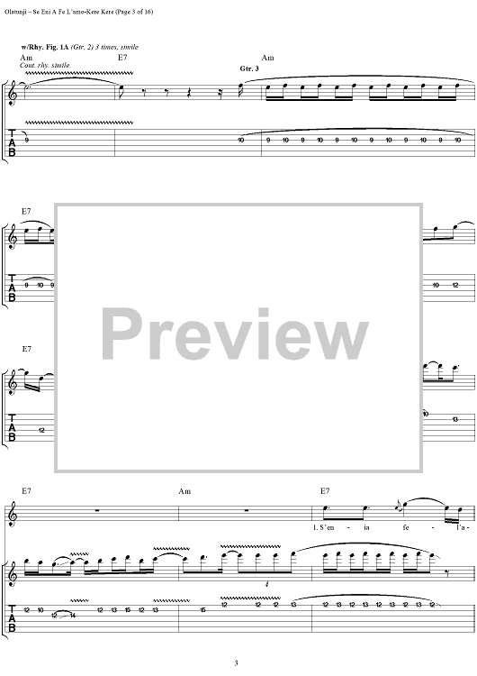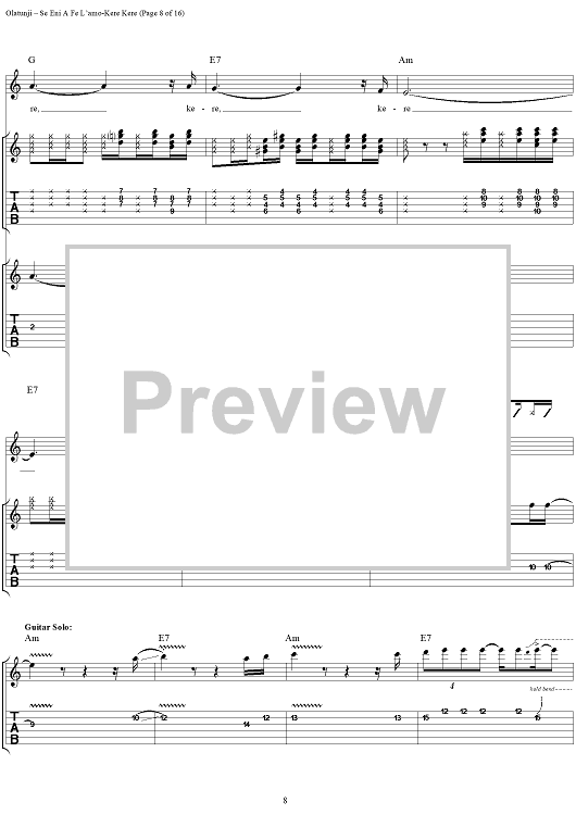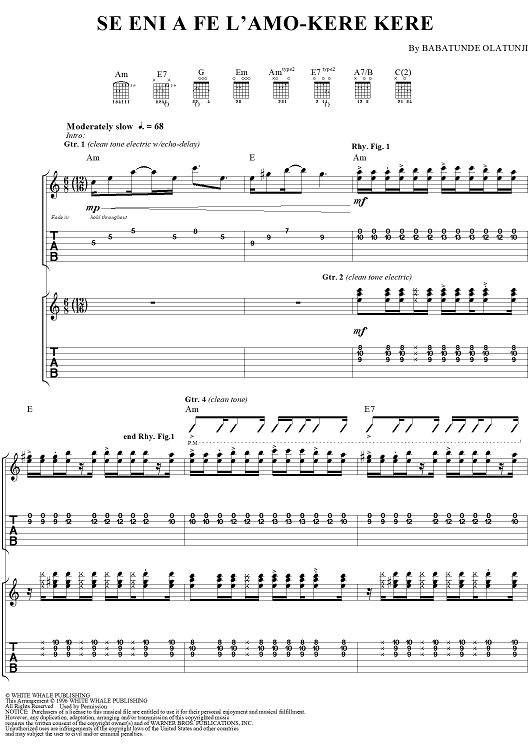 Digital Sheet Music for Se Eni a Fe L'Amo-Kere Kere by Carlos Santana, Babatunde Olatunji scored for Guitar Tab/Vocal; id:113541