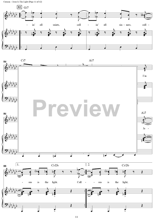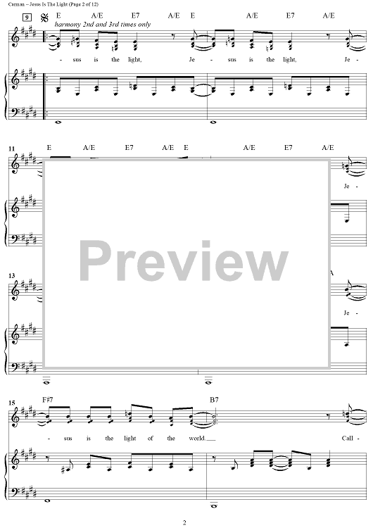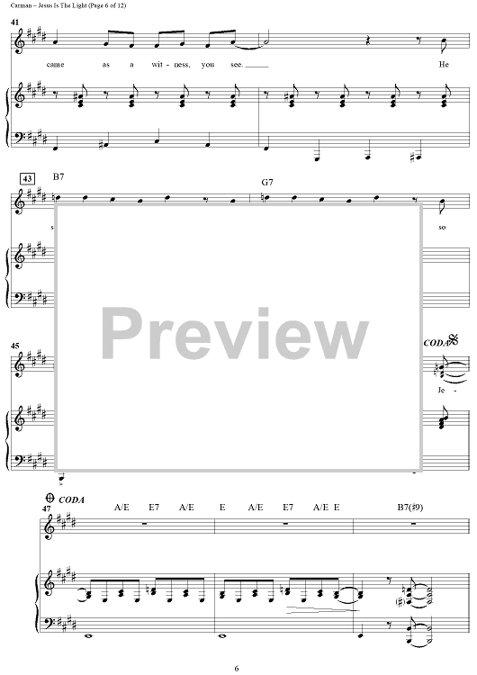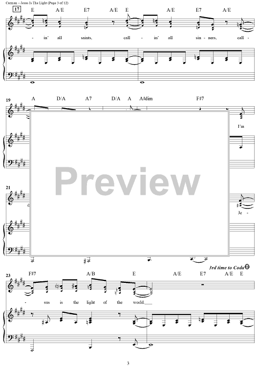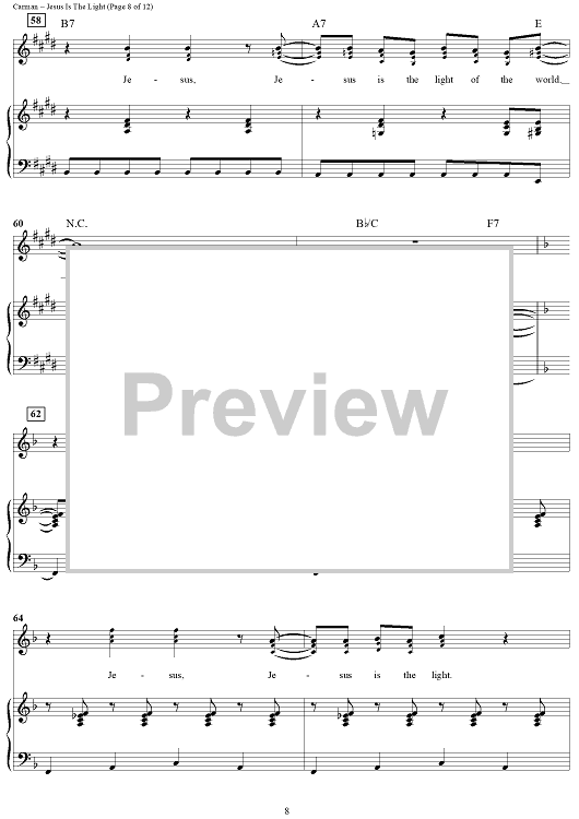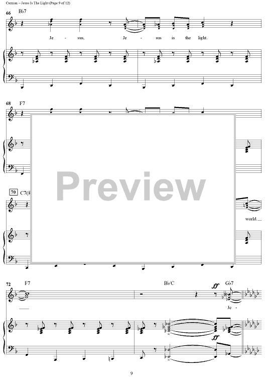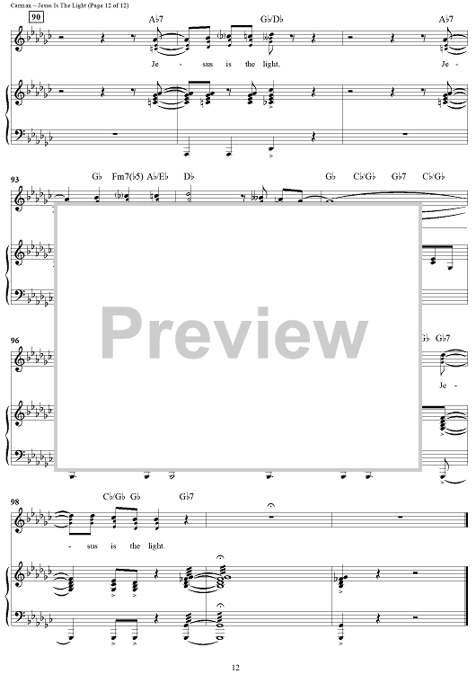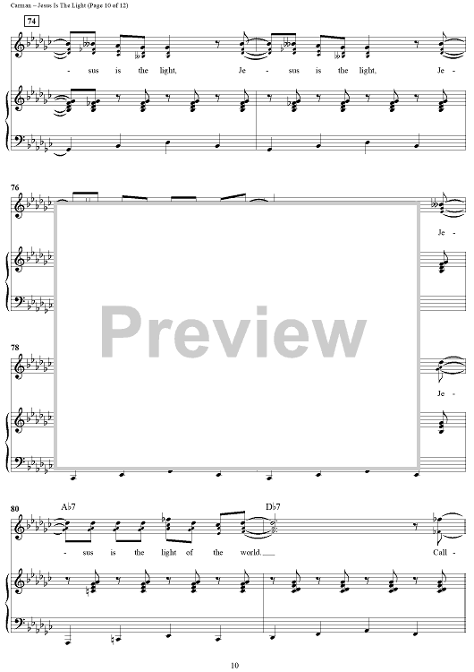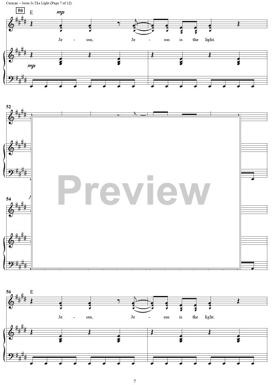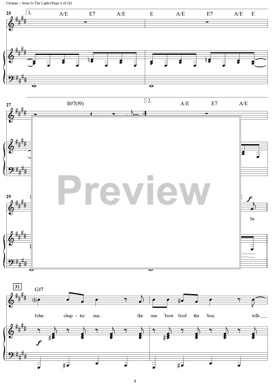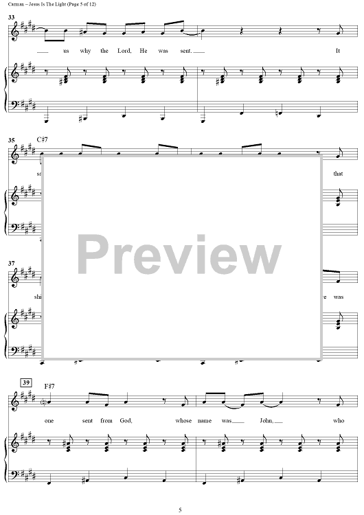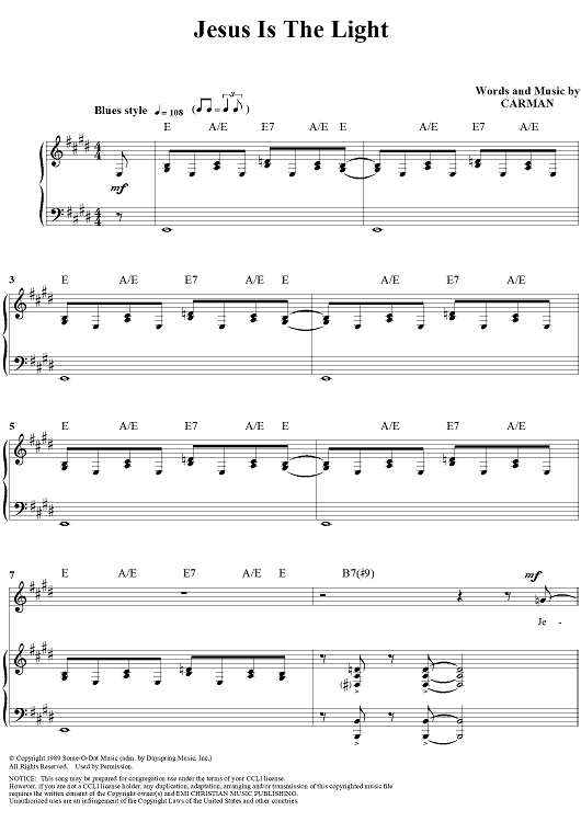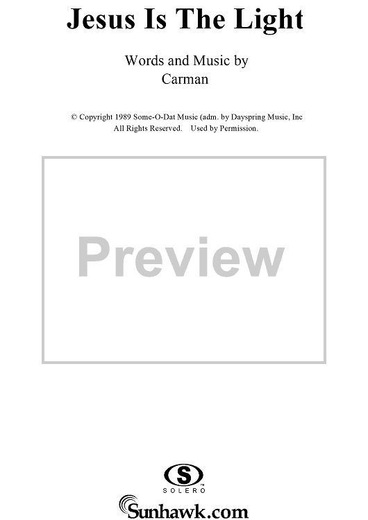 Digital Sheet Music for Jesus Is the Light by Carman scored for Piano/Vocal/Chords; id:113496