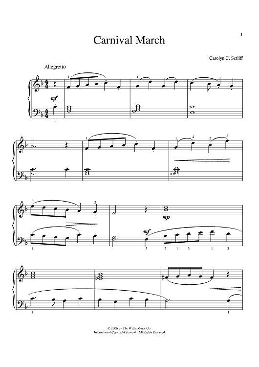 Digital Sheet Music for Carnival March by Carolyn C. Setliff scored for Piano; id:390602