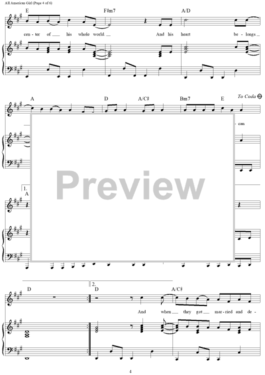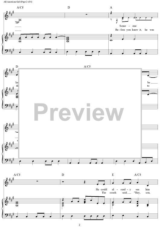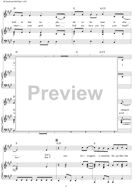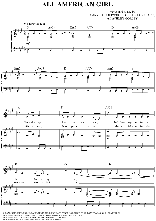 Digital Sheet Music for All-American Girl by Ashley Gorley, Kelley Lovelace, Carrie Underwood scored for Piano/Vocal/Chords; id:463771