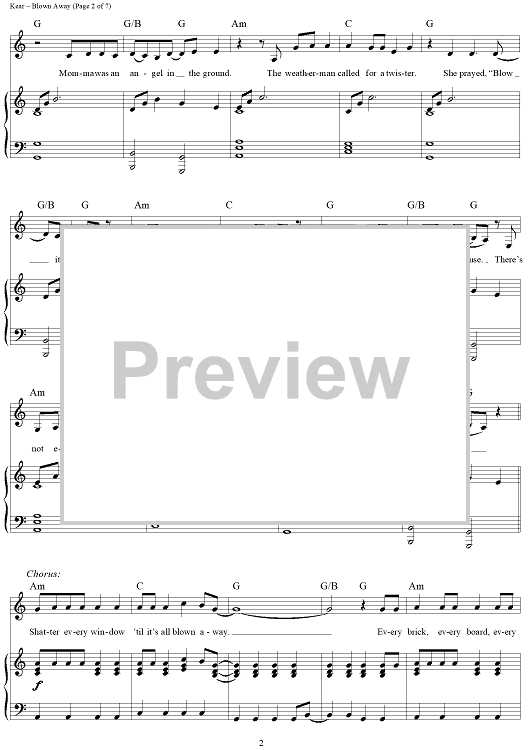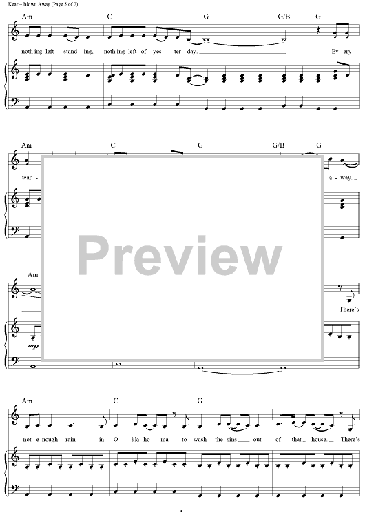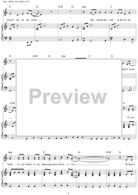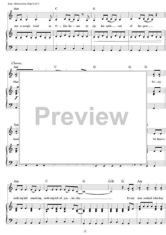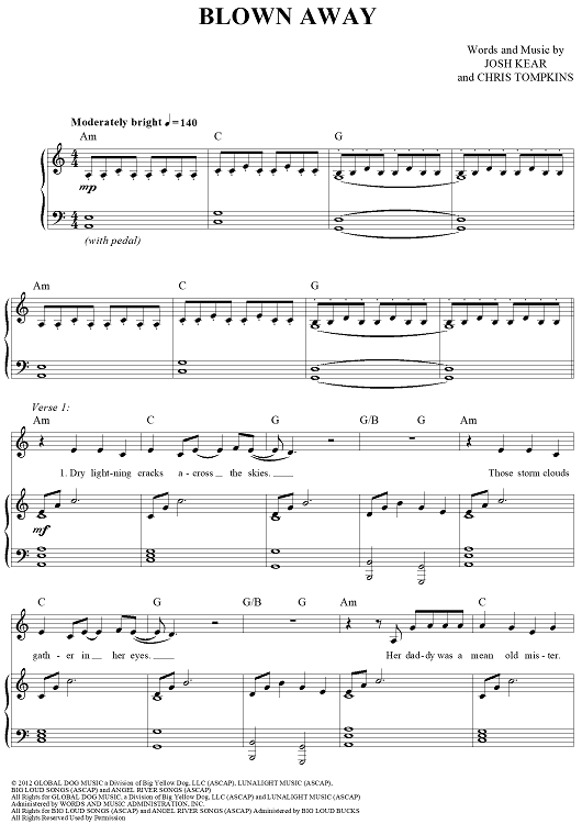 Digital Sheet Music for Blown Away by Josh Kear, Chris Tompkins, Carrie Underwood scored for Piano/Vocal/Chords; id:437739