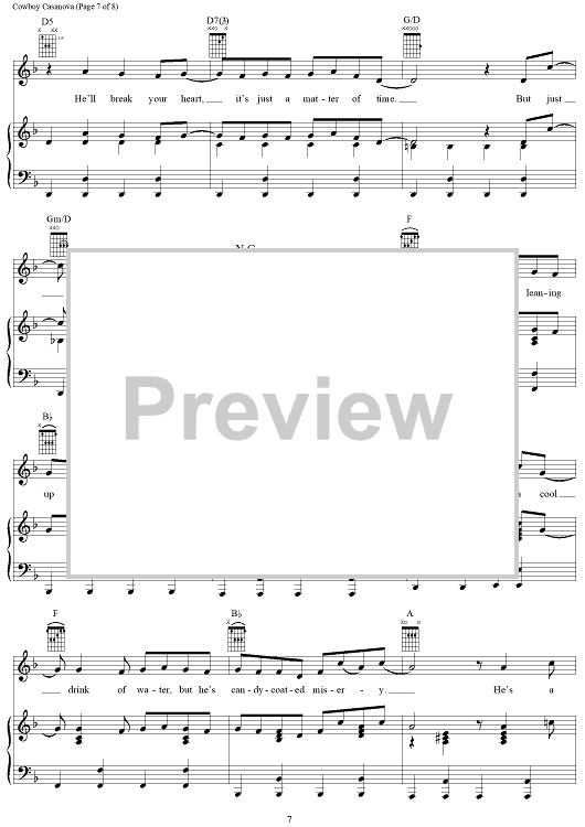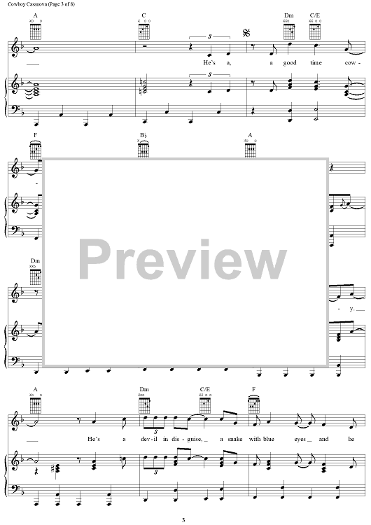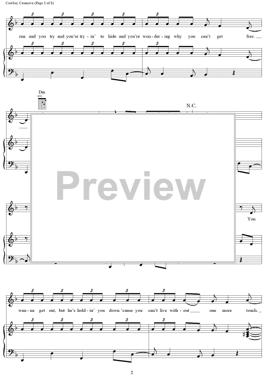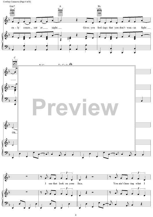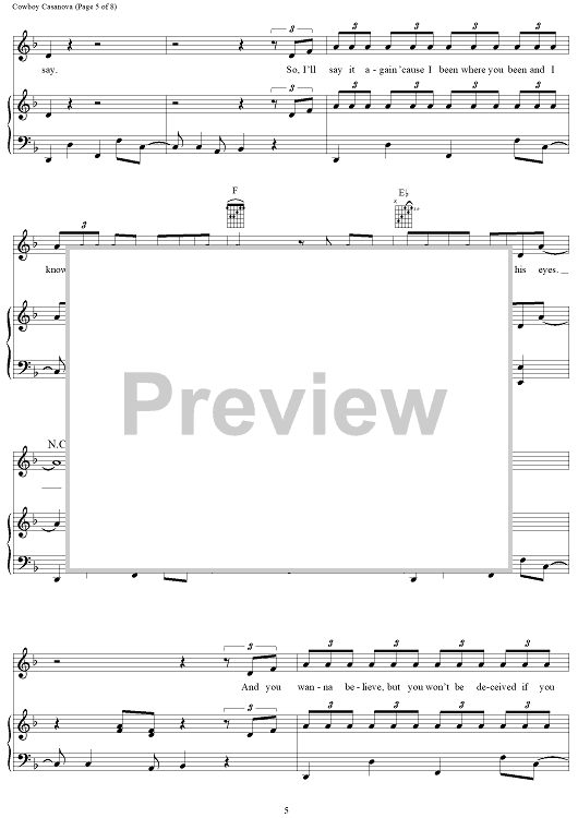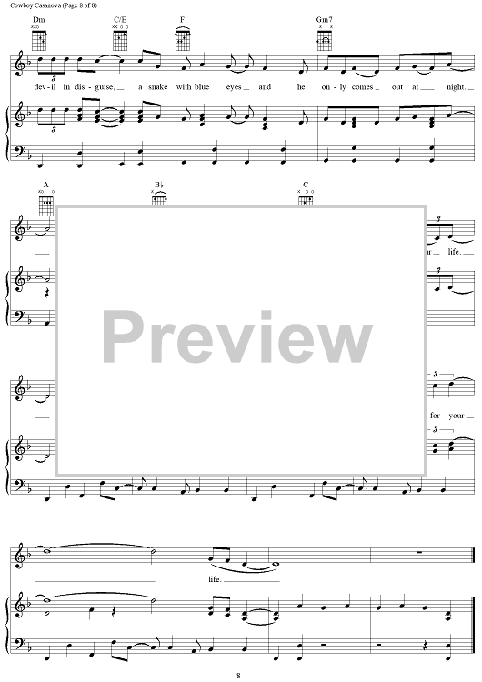 Digital Sheet Music for Cowboy Casanova by Mike Elizondo, Carrie Underwood scored for Piano/Vocal/Chords; id:406678