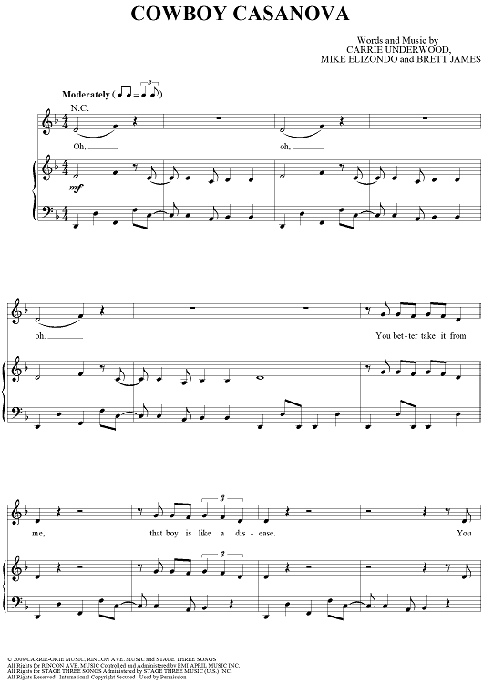 "Cowboy Casanova" Sheet Music by Carrie Underwood