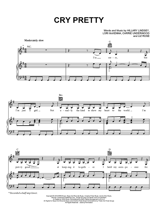 Digital Sheet Music for Cry Pretty by Hillary Lindsey, Liz Rose, Lori McKenna, Carrie Underwood scored for Piano/Vocal/Chords; id:466364