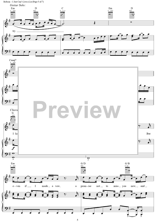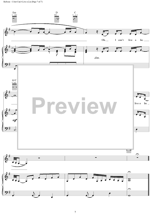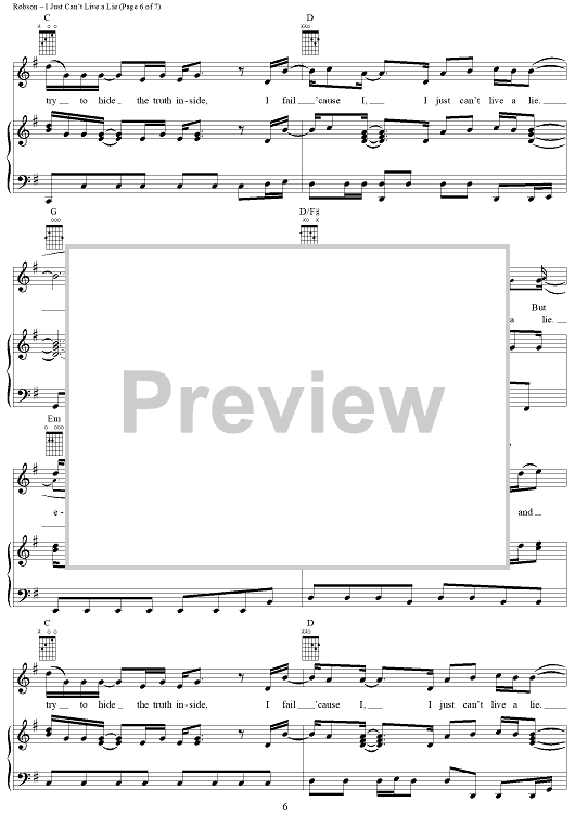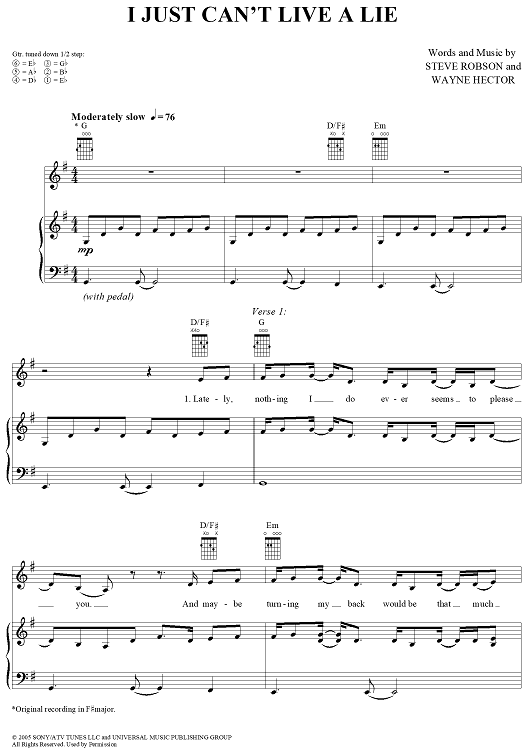 Digital Sheet Music for I Just Can't Live a Lie by Wayne Hector, Steve Robson, Carrie Underwood scored for Piano/Vocal/Chords; id:366051