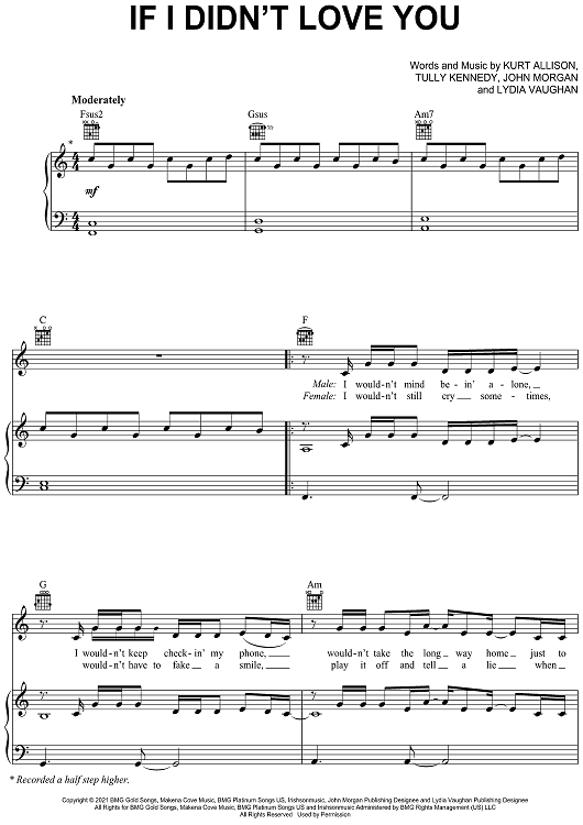 Digital Sheet Music for If I Didn't Love You by Jason Aldean, Carrie Underwood, Kurt Allison, Tully Kennedy, John Morgan, Lydia Vaughan scored for Piano/Vocal/Chords; id:469426