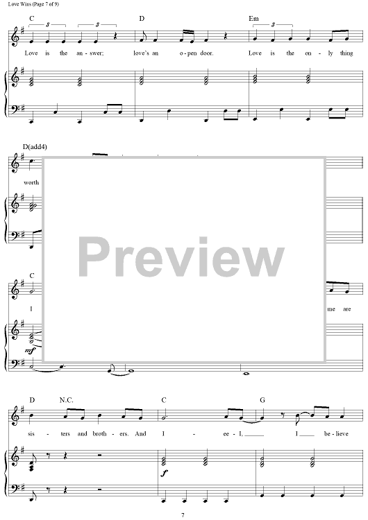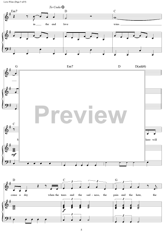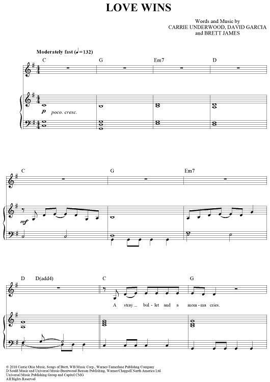 Digital Sheet Music for Love Wins by Brett James, Carrie Underwood, David Garcia scored for Piano/Vocal/Chords; id:466426