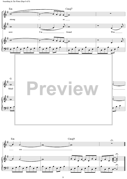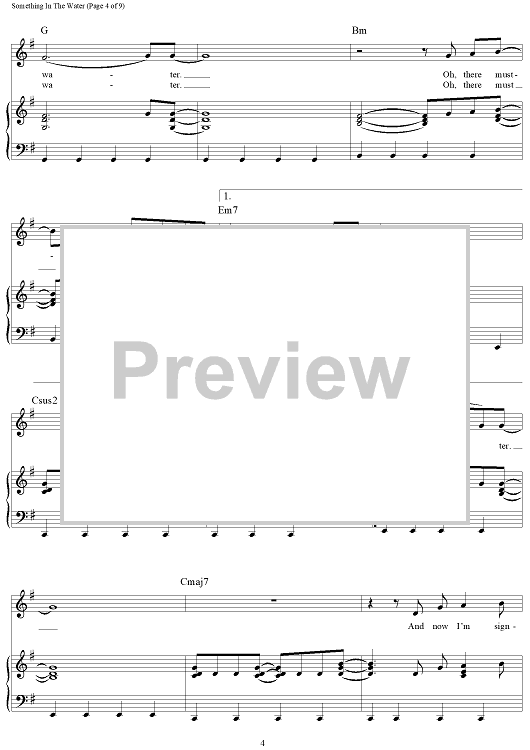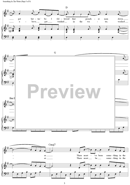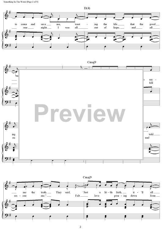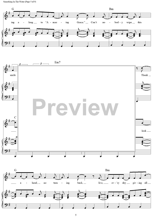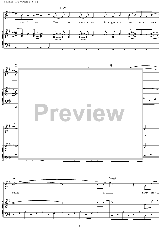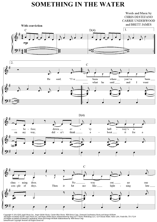 Digital Sheet Music for Something In The Water by Brett James, Chris DeStefano, Carrie Underwood scored for Piano/Vocal/Chords; id:446933