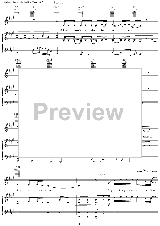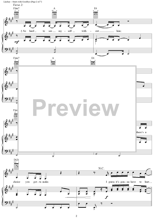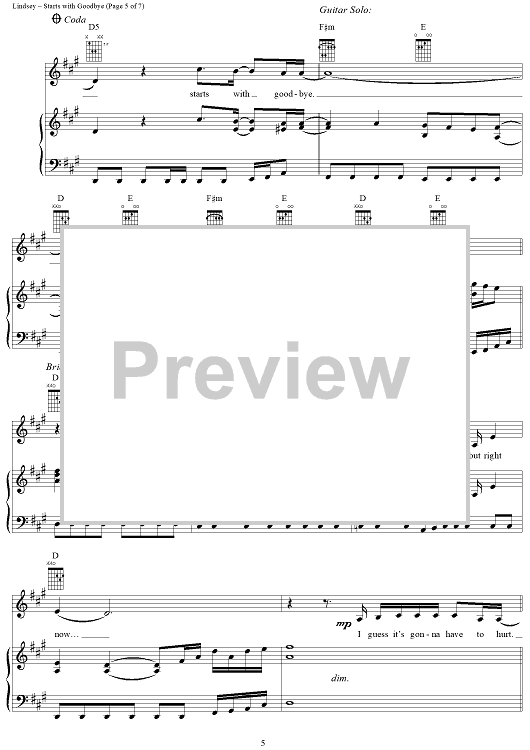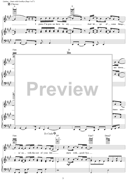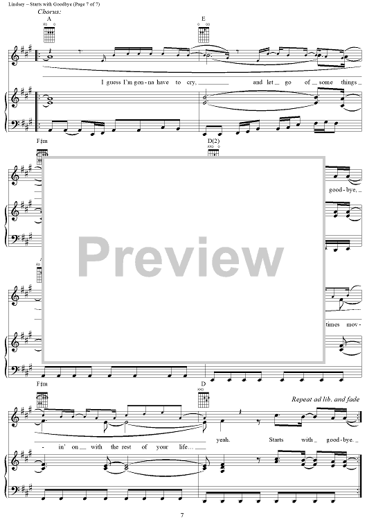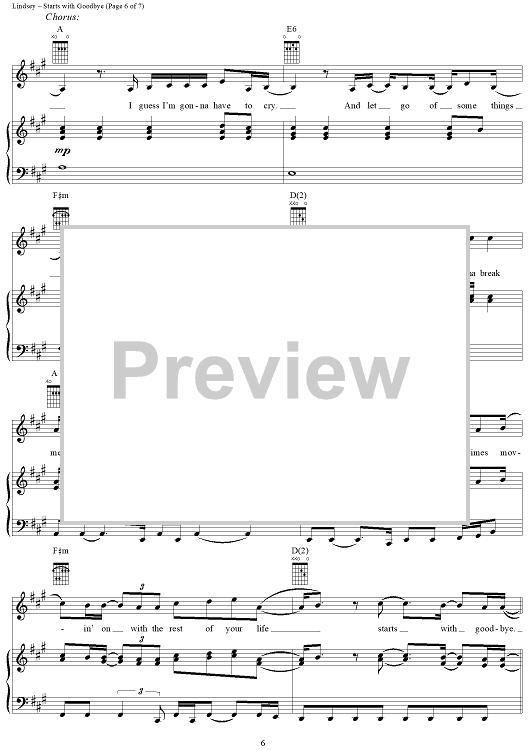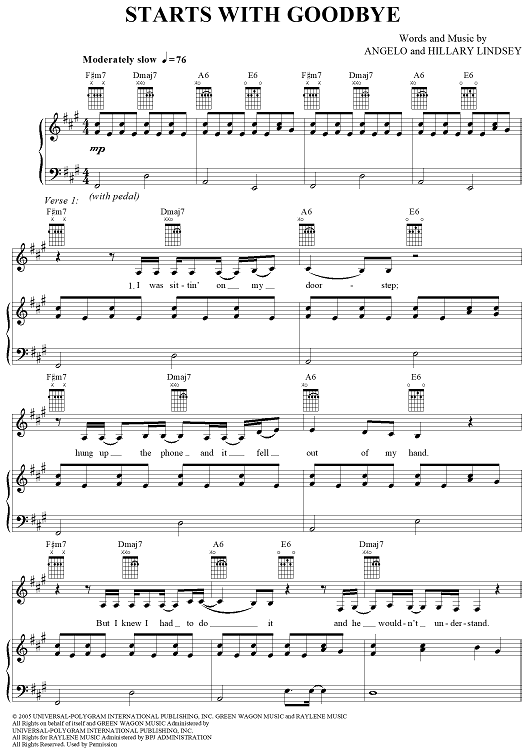 Digital Sheet Music for Starts with Goodbye by Hillary Lindsey, Angelo Lindsey, Carrie Underwood scored for Piano/Vocal/Chords; id:366050