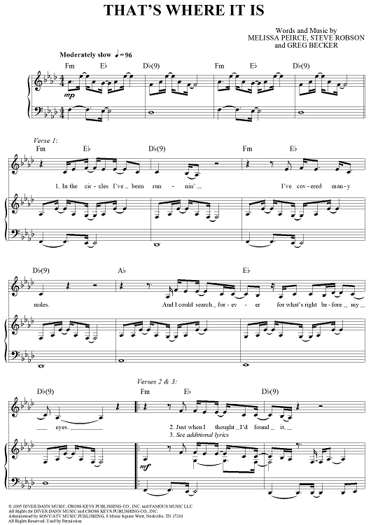 Digital Sheet Music for That's Where It Is by Steve Robson, Melissa Peirce, Greg Becker, Carrie Underwood scored for Piano/Vocal/Chords; id:366019