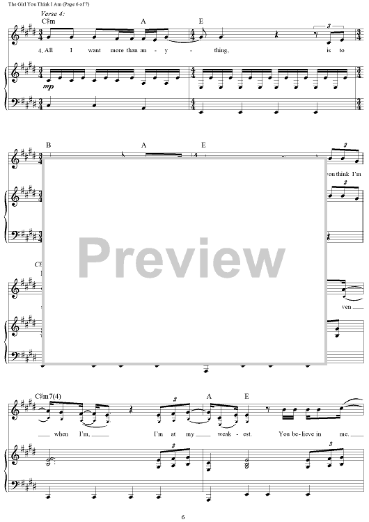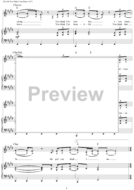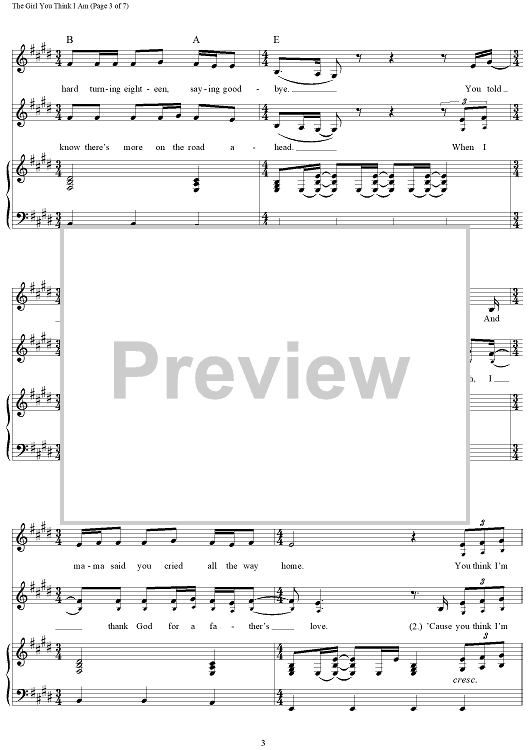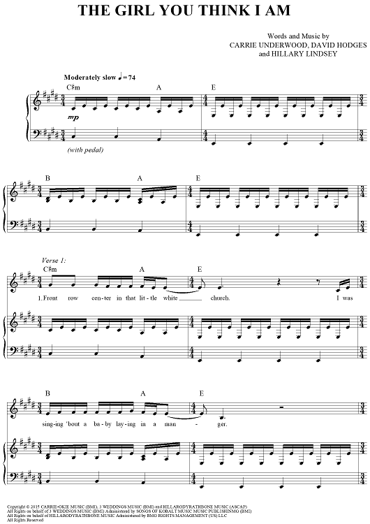 Digital Sheet Music for The Girl You Think I Am by Hillary Lindsey, David Hodges, Carrie Underwood scored for Piano/Vocal/Chords; id:457199