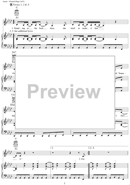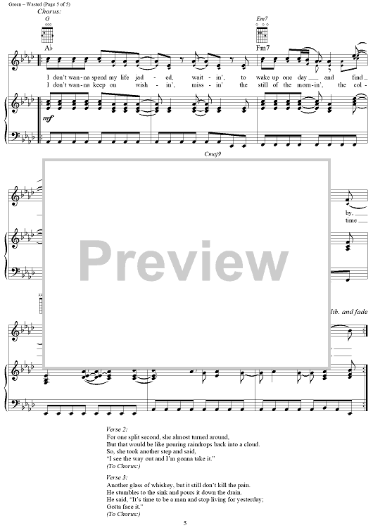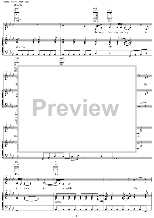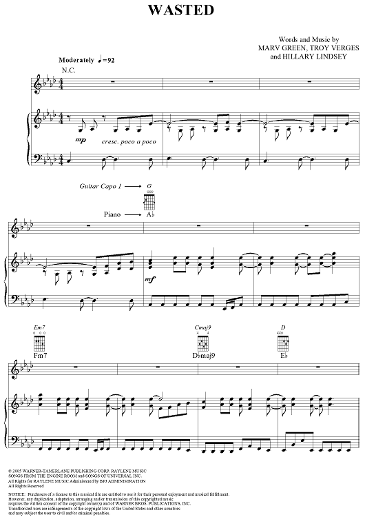 Digital Sheet Music for Wasted by Marv Green, Troy Verges, Hillary Lindsey, Carrie Underwood scored for Piano/Vocal/Chords; id:361939