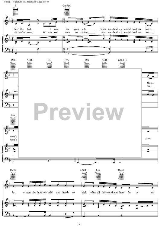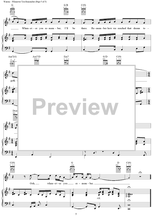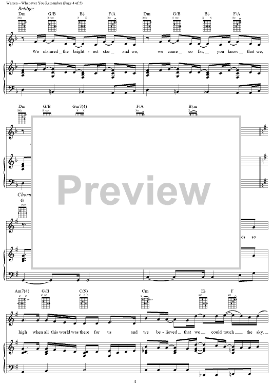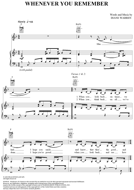Digital Sheet Music for Whenever You Remember by Diane Warren, Carrie Underwood scored for Piano/Vocal/Chords; id:321044
