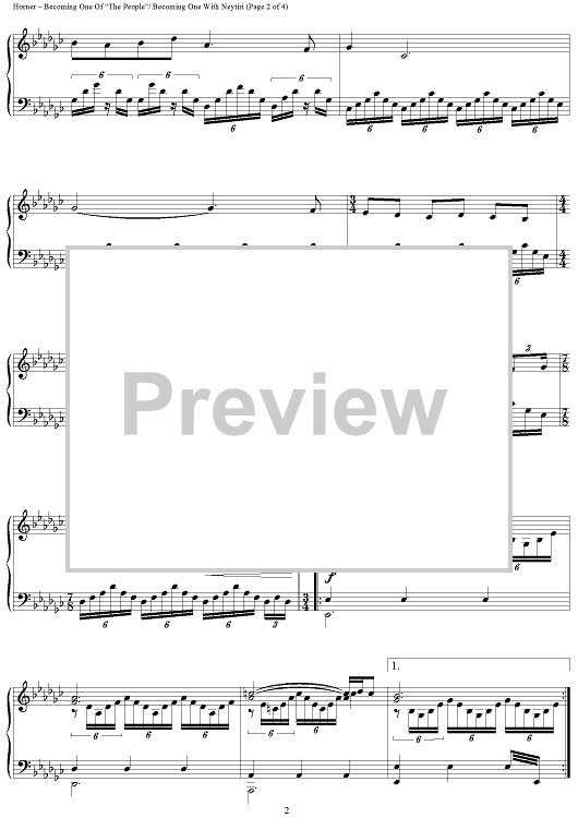 "Becoming One Of The People / Becoming One With Neytir" Sheet Music by James Horner
