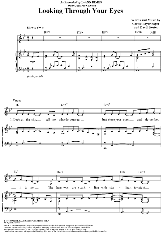 Digital Sheet Music for Looking Through Your Eyes by Carole Bayer Sager, LeAnn Rimes, David Foster scored for Piano/Vocal/Chords; id:108920