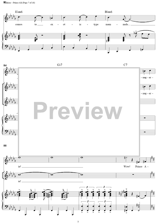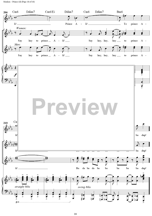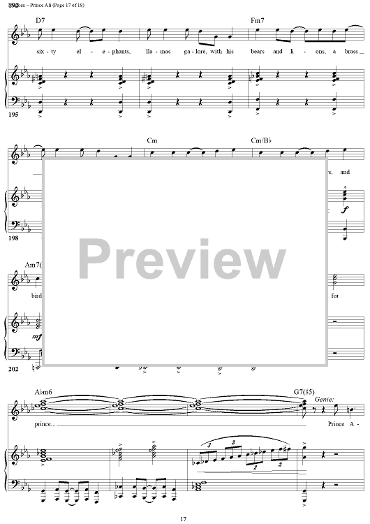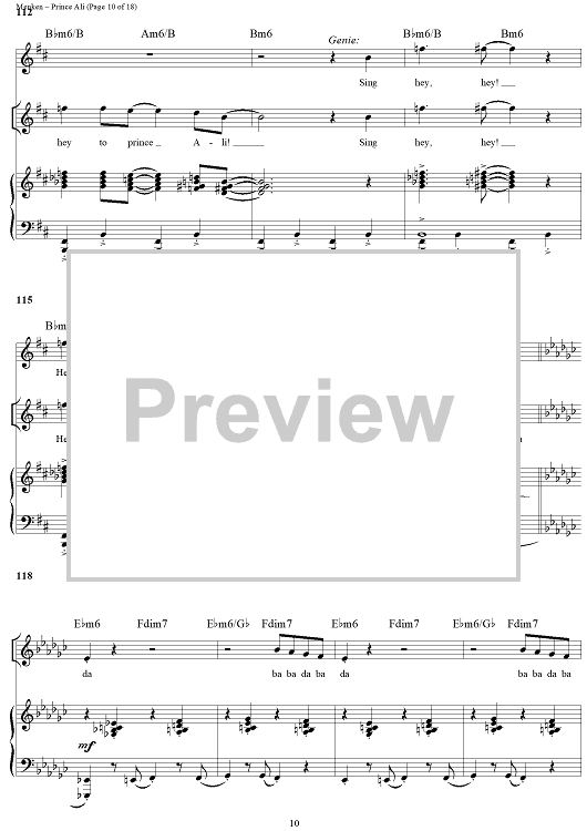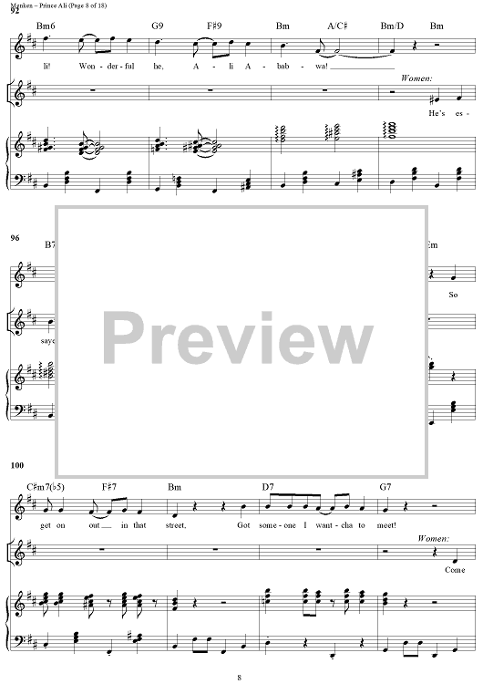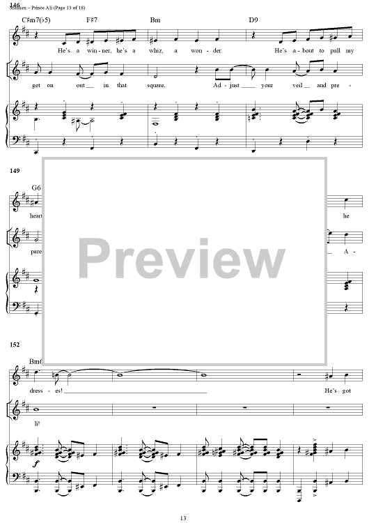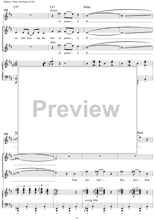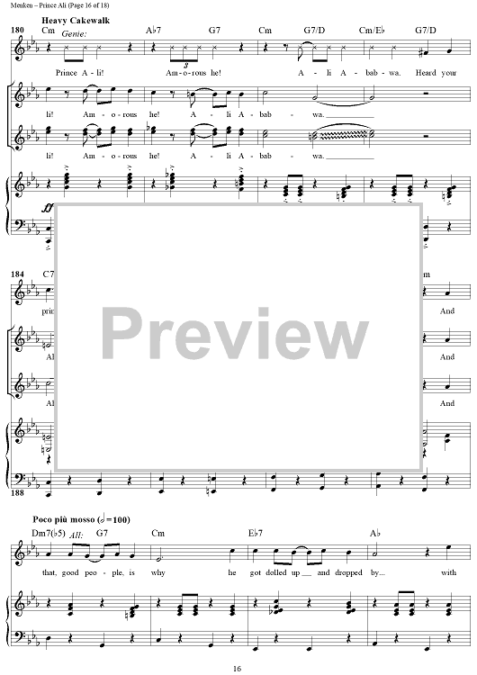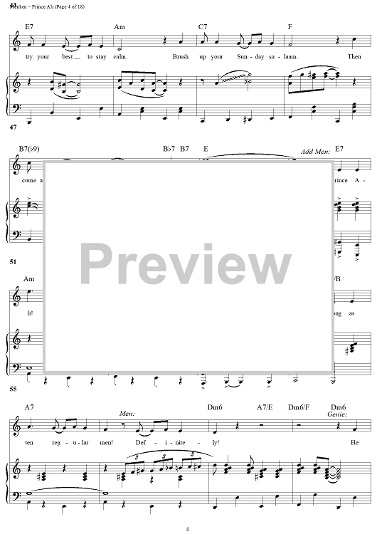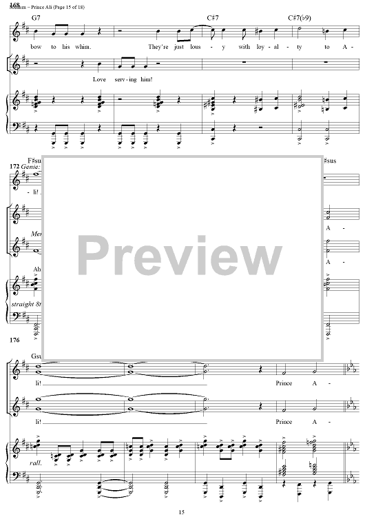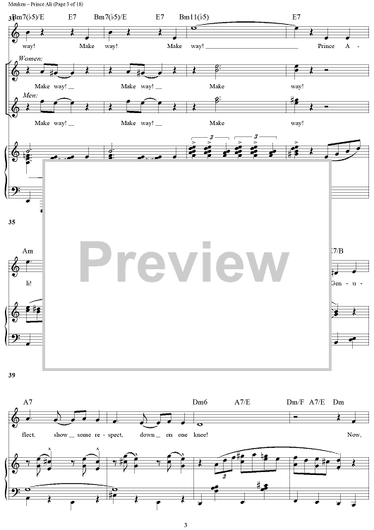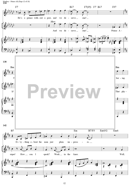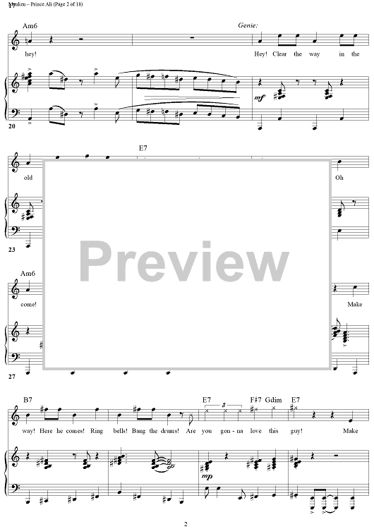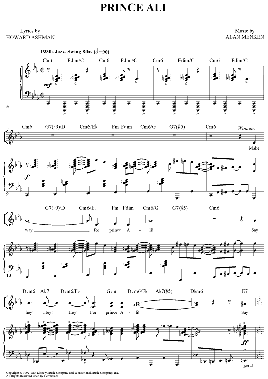 Digital Sheet Music for Prince Ali by Alan Menken, Howard Ashman scored for Piano/Vocal/Chords; id:448122