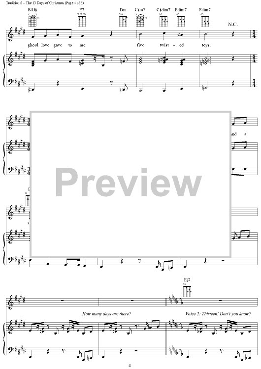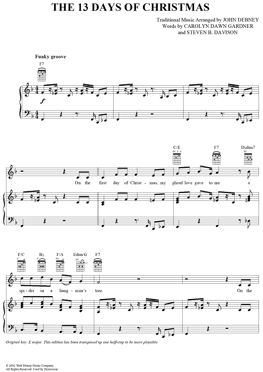 Digital Sheet Music for The 13 Days of Christmas by John Debney, Traditional, Carolyn Dawn Gardner, Steven B. Davison scored for Piano/Vocal/Chords; id:366920