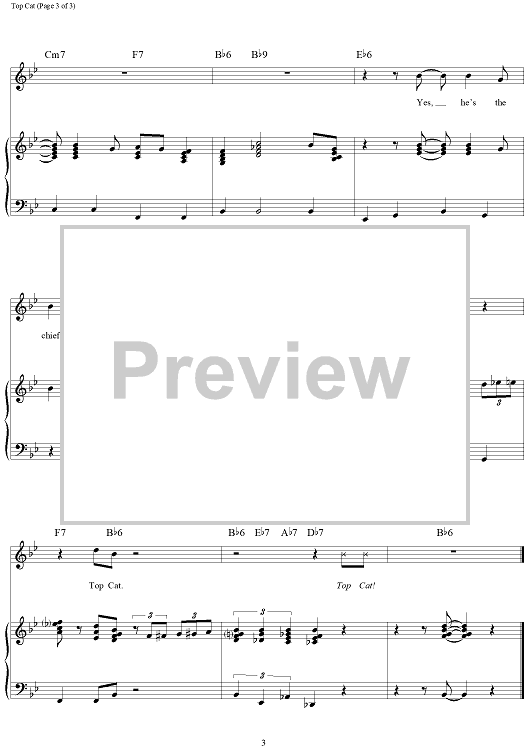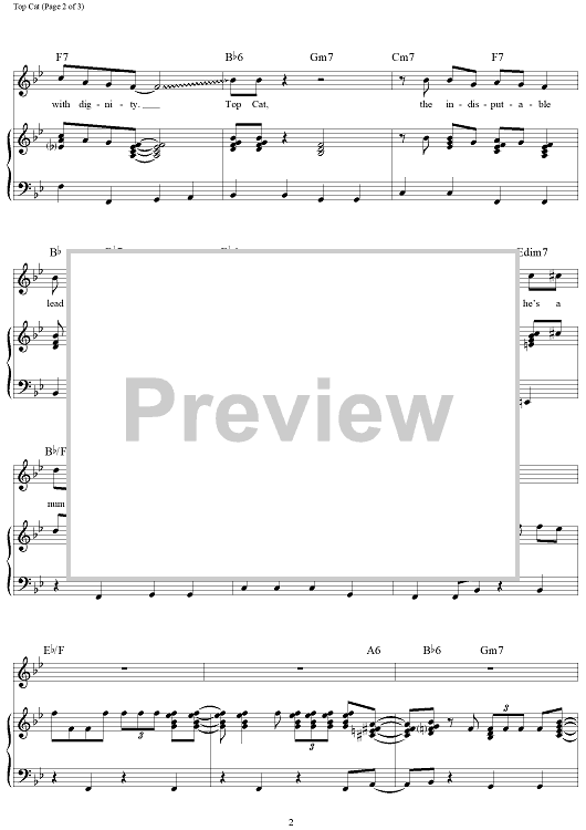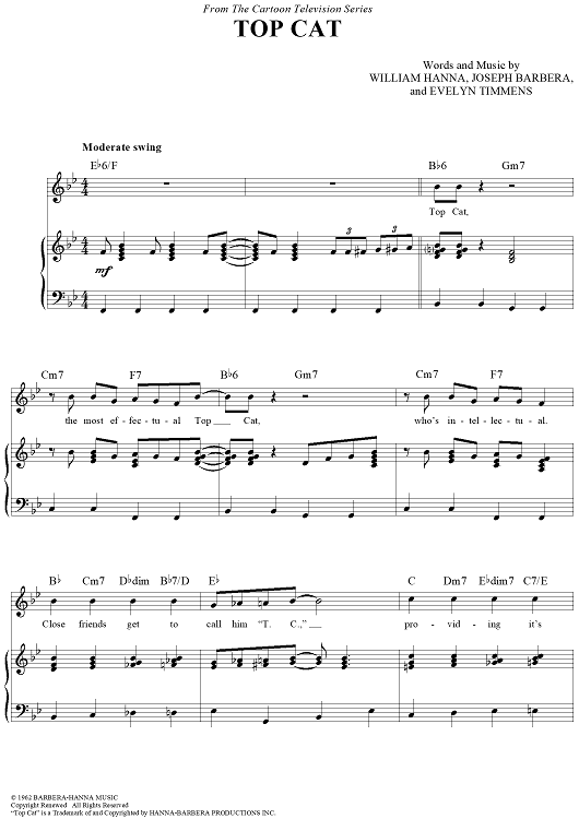 Digital Sheet Music for Top Cat by Joseph Barbera, Evelyn Timmens, William Hanna scored for Piano/Vocal/Chords; id:110731
