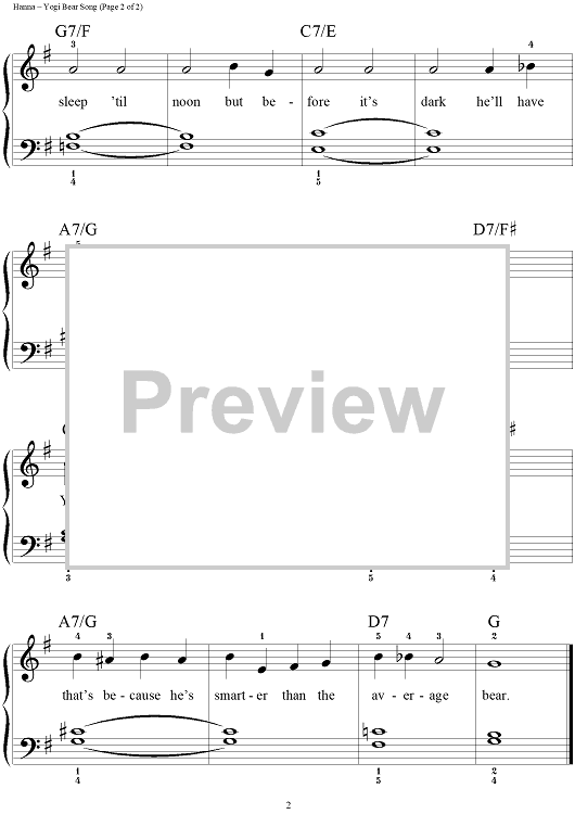 Digital Sheet Music for Yogi Bear Song by Joseph Barbera, Hoyt Curtin, Richard Bradley, William Hanna, Charles Shows scored for Easy Piano/Vocal; id:285595