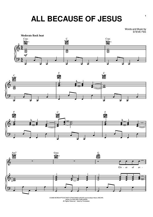 Digital Sheet Music for All Because Of Jesus by Casting Crowns, Steve Fee scored for Piano/Vocal/Chords; id:401538