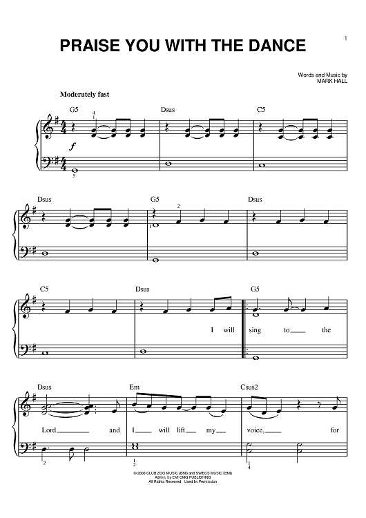 Digital Sheet Music for Praise You With The Dance by Mark Hall, Casting Crowns scored for Easy Piano; id:387344