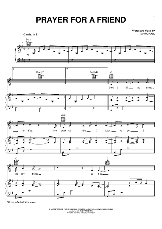 Digital Sheet Music for Prayer For A Friend by Mark Hall, Casting Crowns scored for Piano/Vocal/Chords; id:401534