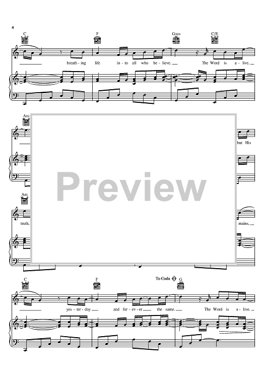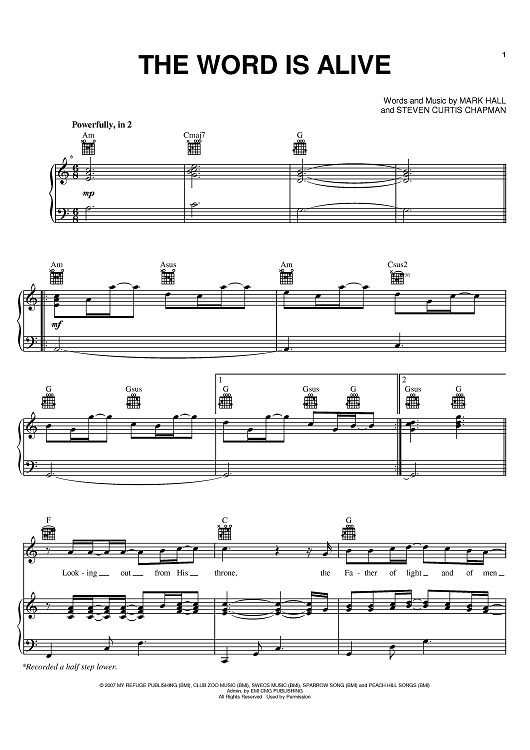 Digital Sheet Music for The Word Is Alive by Steven Curtis Chapman, Mark Hall, Casting Crowns scored for Piano/Vocal/Chords; id:401537