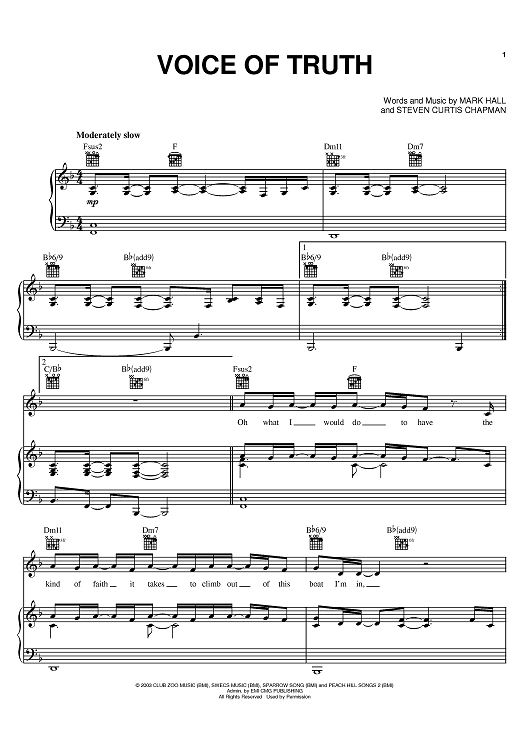 Digital Sheet Music for Voice Of Truth by Steven Curtis Chapman, Mark Hall, Casting Crowns scored for Piano/Vocal/Chords; id:374828