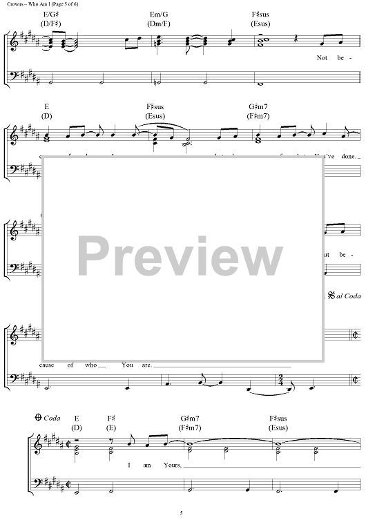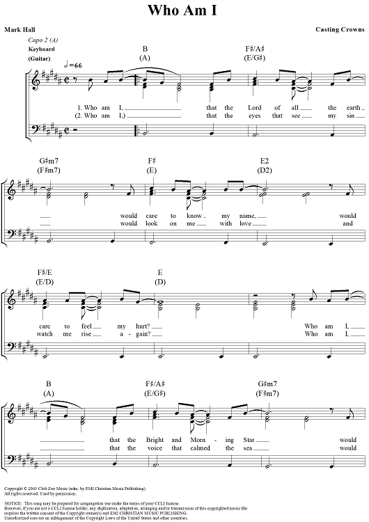 Digital Sheet Music for Who Am I by Mark Hall, Casting Crowns scored for Piano/Vocal/Chords; id:308299