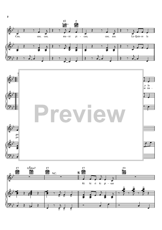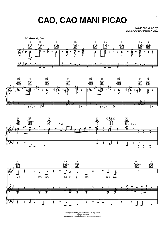 Digital Sheet Music for Cao, Cao Mani Picao by Celia Cruz, Jose Carbo Menendez scored for Piano/Vocal/Chords; id:386301