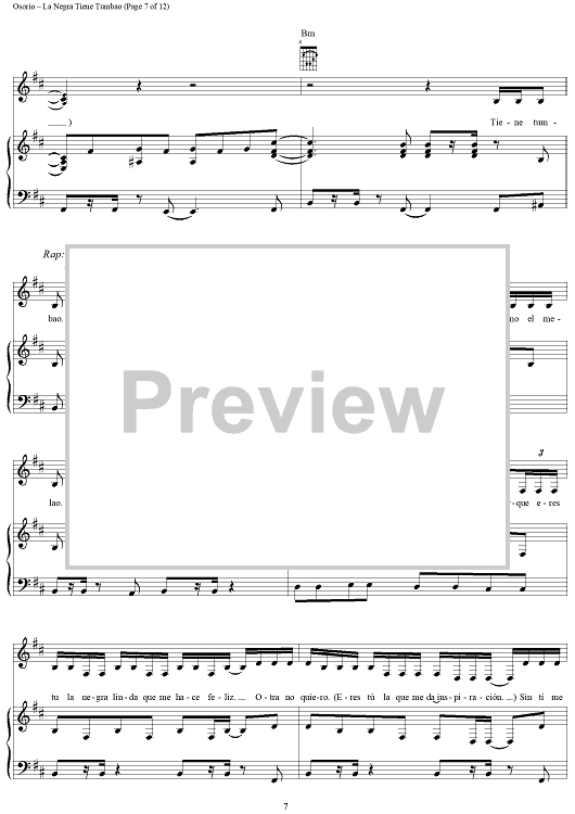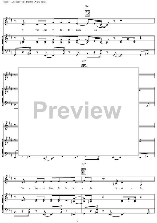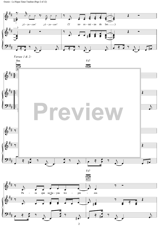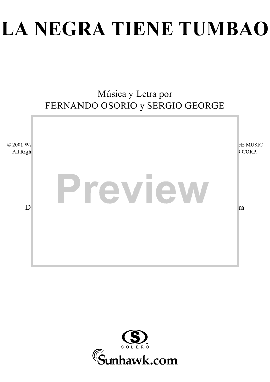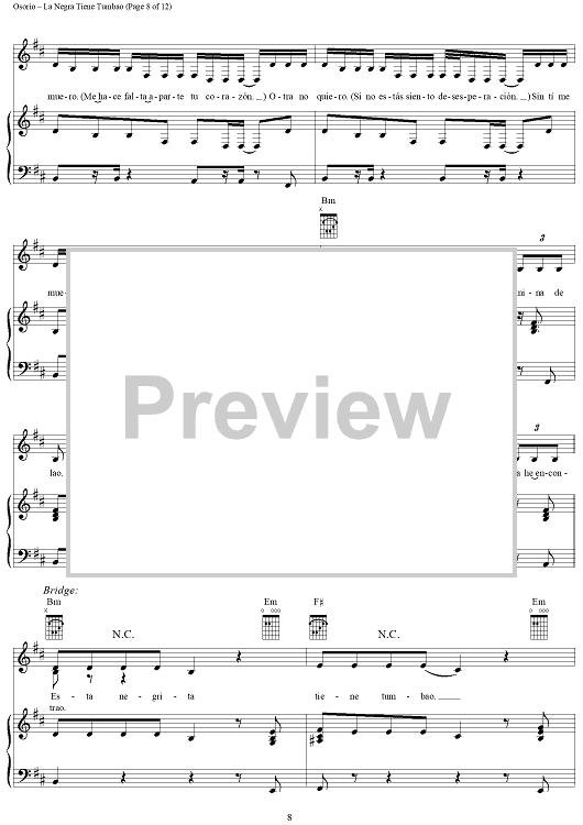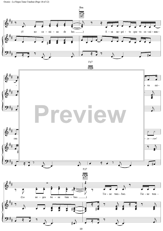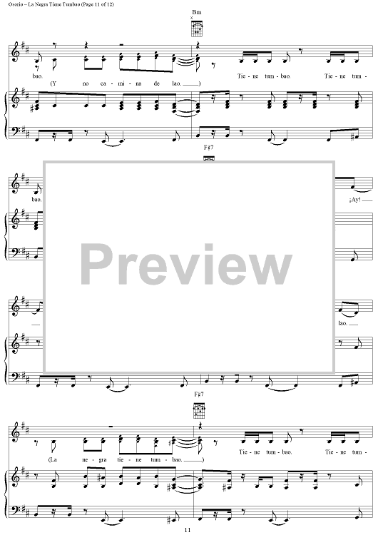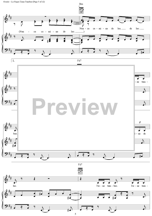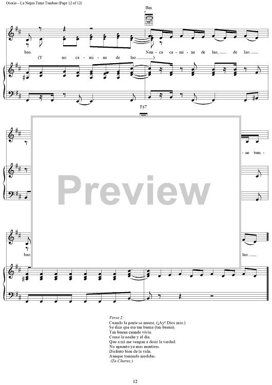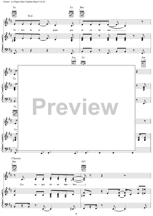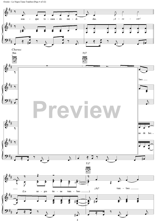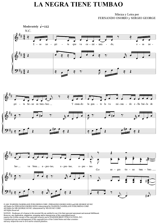 Digital Sheet Music for La Negra Tiene Tumbao by Fernando Osorio, Celia Cruz, Sergio George scored for Piano/Vocal/Chords; id:304219