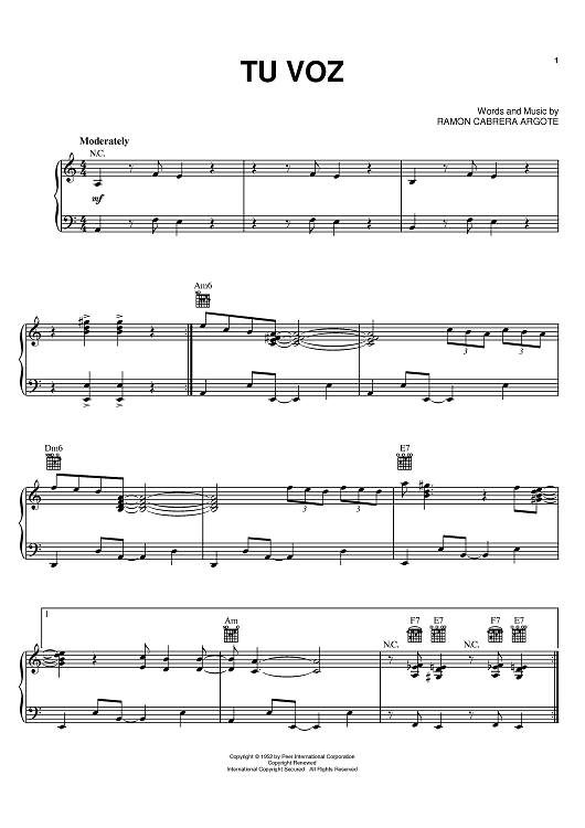 Digital Sheet Music for Tu Voz by Celia Cruz, Ramon Cabrera Argote scored for Piano/Vocal/Chords; id:386304