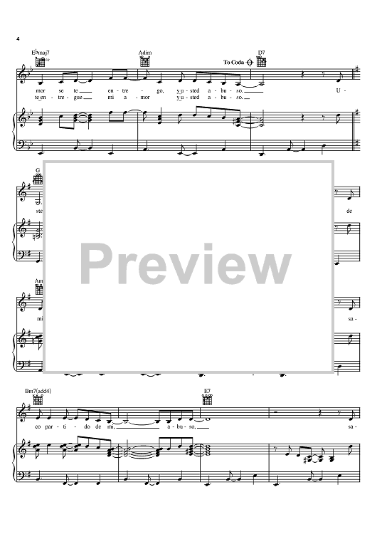 Digital Sheet Music for Usted Abuso by Celia Cruz, Jose Ubaldo Avila Brito, Jose Carlos Figueiredo, Antonio Carlos Marques Pinto scored for Piano/Vocal/Chords; id:386298