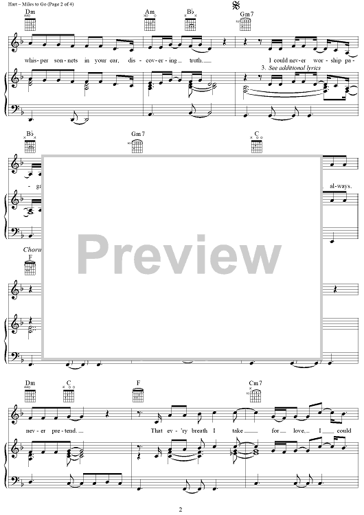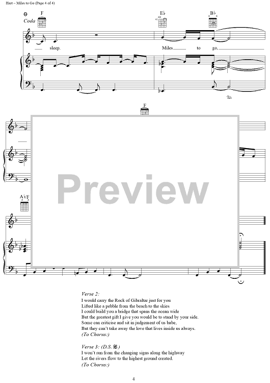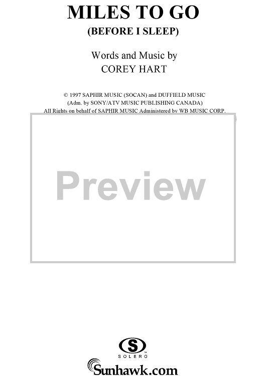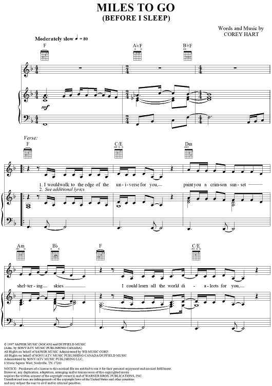 Digital Sheet Music for Miles To Go (Before I Sleep) by Celine Dion, Corey Hart scored for Piano/Vocal/Chords; id:112062