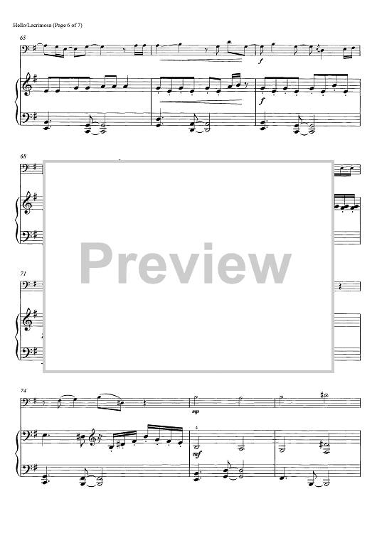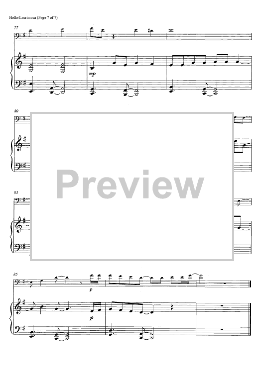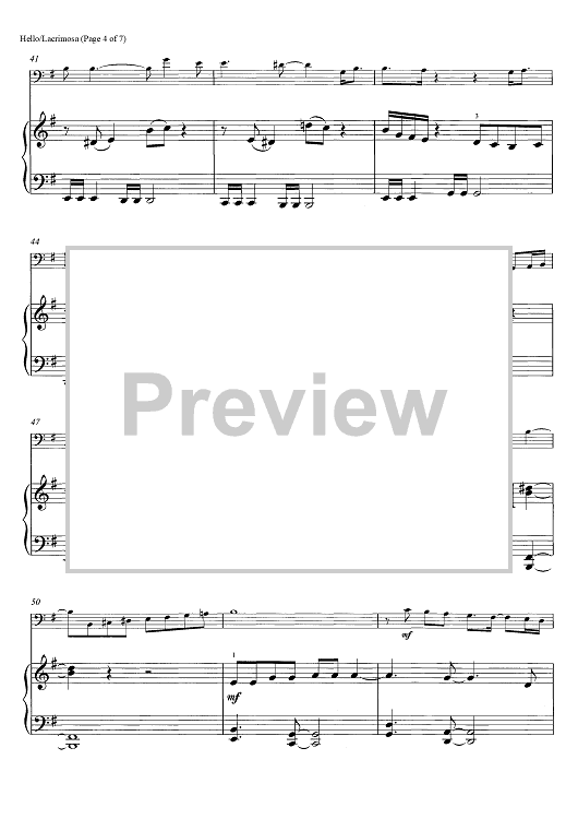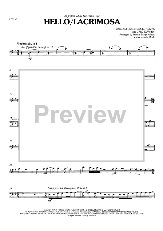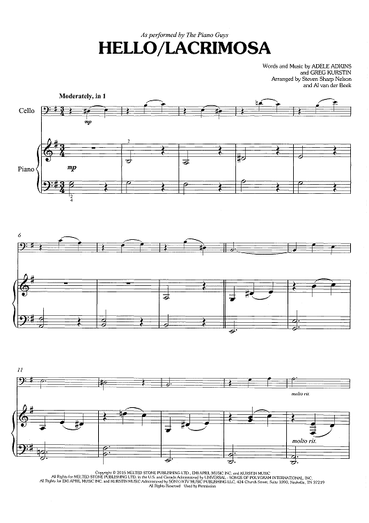 Digital Sheet Music for Hello/Lacrimosa by Greg Kurstin, Adele Adkins, Al Van Der Beek, Steven Sharp Nelson, The Piano Guys scored for Cello and Piano; id:465585