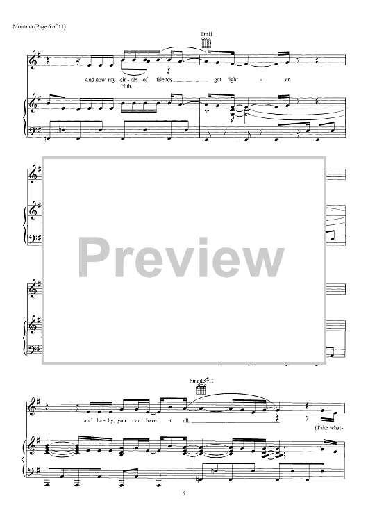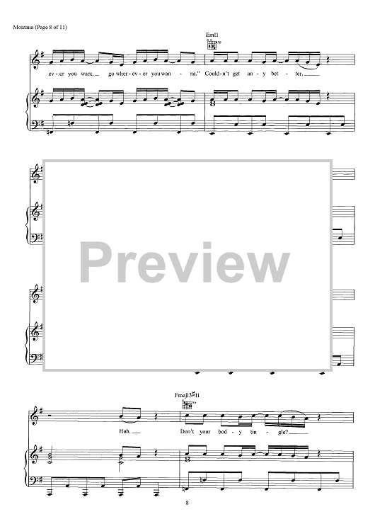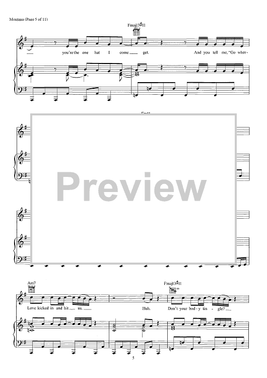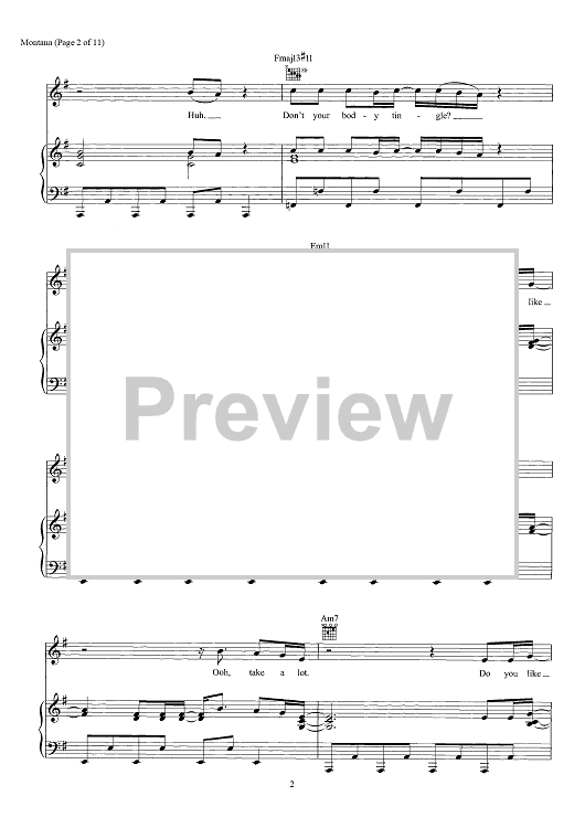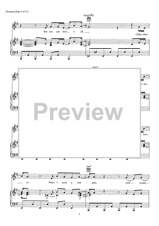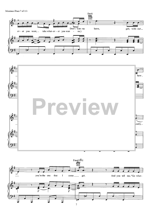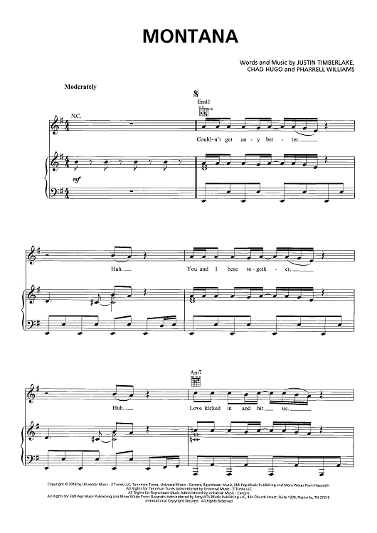 Digital Sheet Music for Montana by Chad Hugo, Pharrell Williams, Justin Timberlake scored for Piano/Vocal/Chords; id:466453