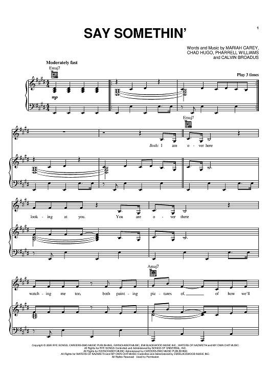 Digital Sheet Music for Say Somethin' by Mariah Carey, Chad Hugo, Pharrell Williams, Snoop Dogg scored for Piano/Vocal/Chords; id:386420