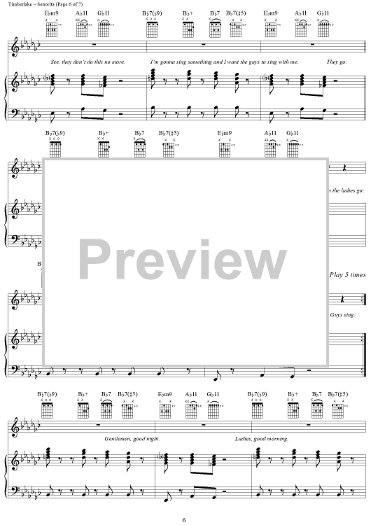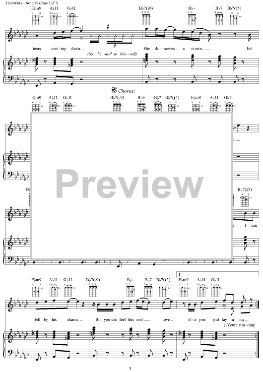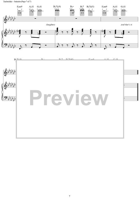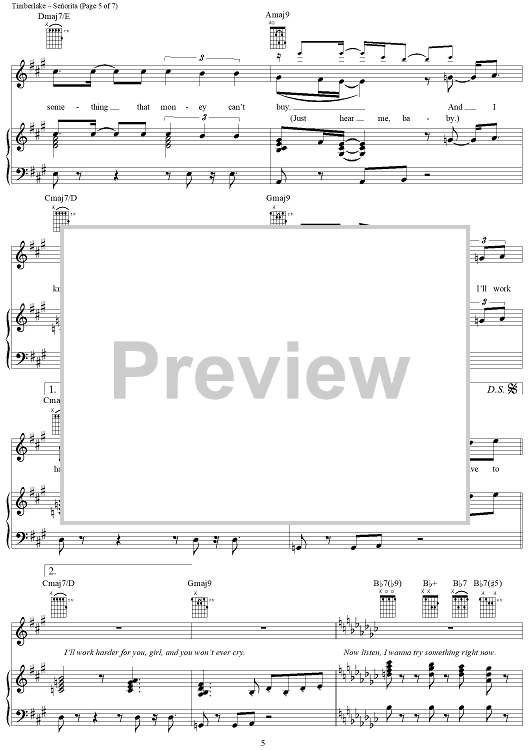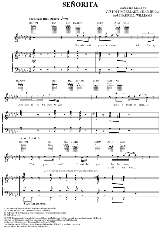 Digital Sheet Music for Señorita by Chad Hugo, Pharrell Williams, Justin Timberlake scored for Piano/Vocal/Chords; id:303103
