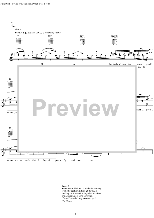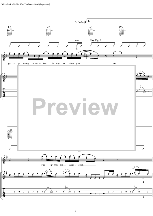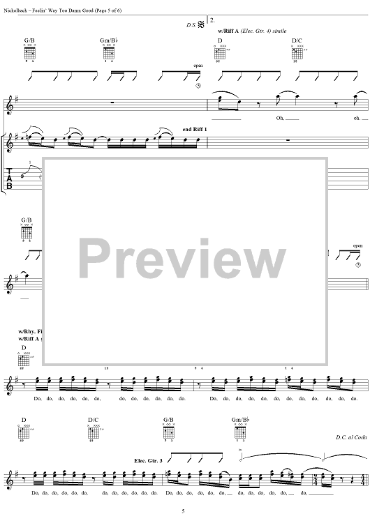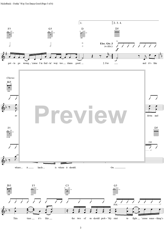 "Feelin' Way Too Damn Good" Sheet Music by Nickelback