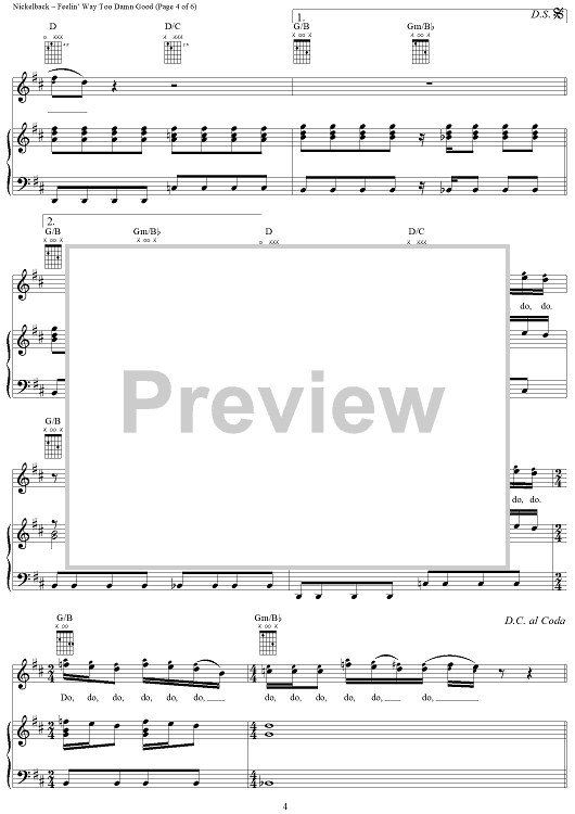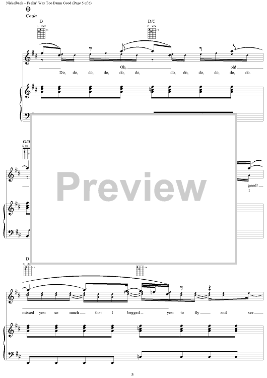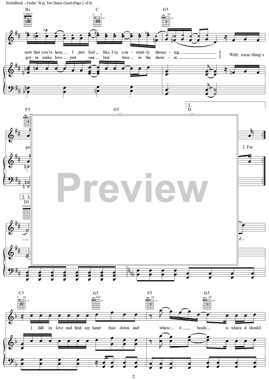 "Feelin' Way Too Damn Good" Sheet Music by Nickelback