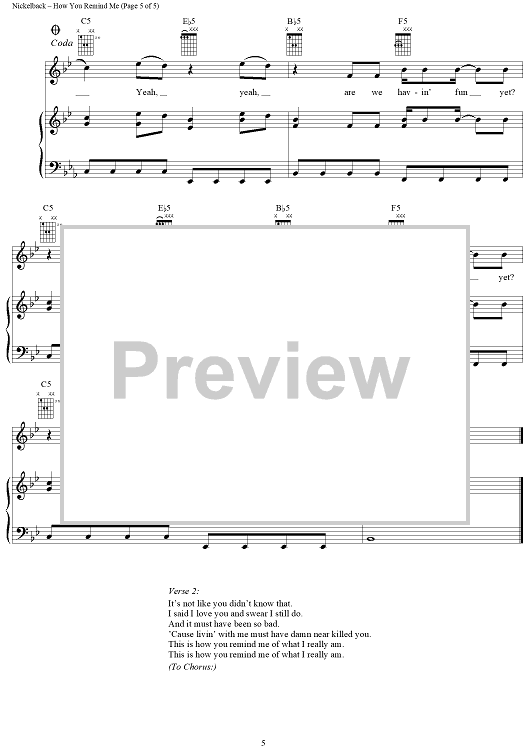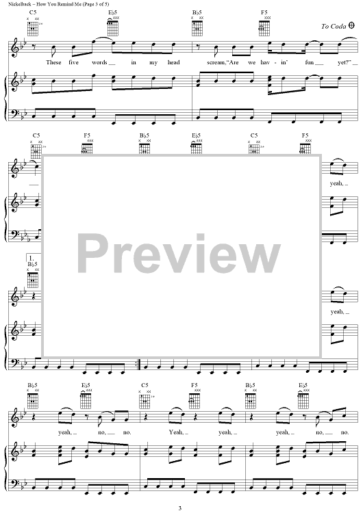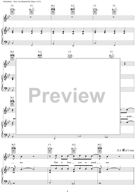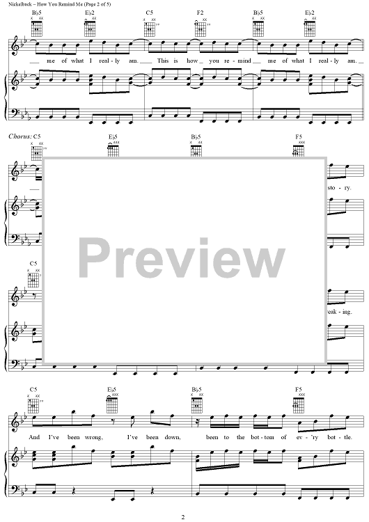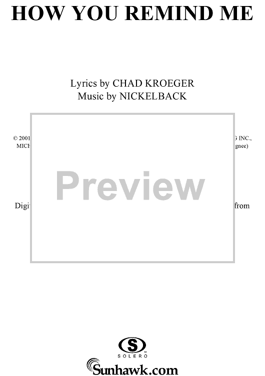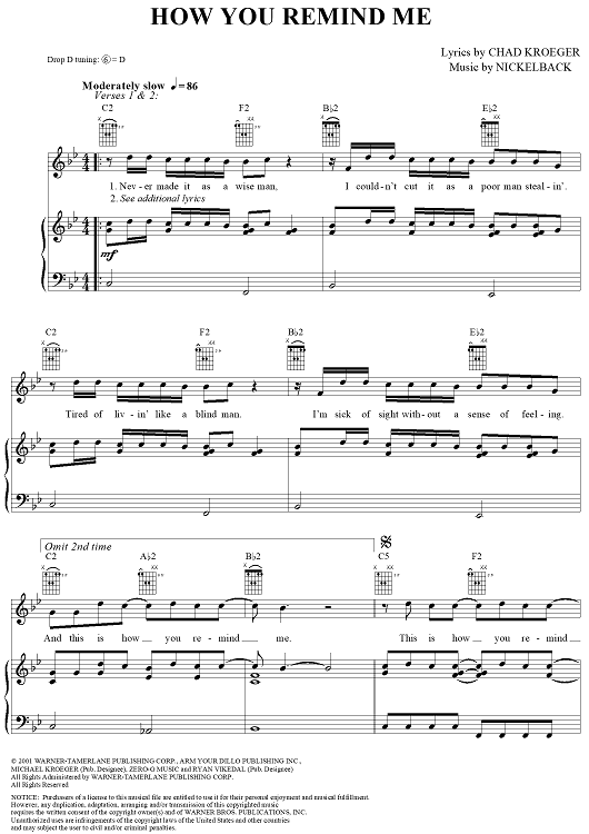 Digital Sheet Music for How You Remind Me by Nickelback, Chad Kroeger scored for Piano/Vocal/Chords; id:285101