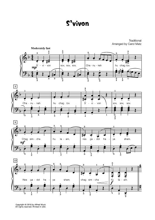 Digital Sheet Music for S'vivon by Carol Matz, Yiddish Song scored for Piano; id:461321