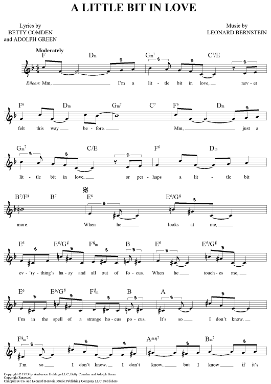 Digital Sheet Music for A Little Bit In Love by Leonard Bernstein, Betty Comden, Adolph Green scored for Lead Sheet; id:460631