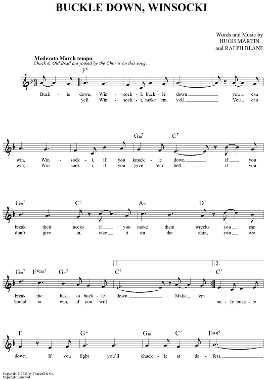 "Buckle Down, Winsocki" Sheet Music by Hugh Martin