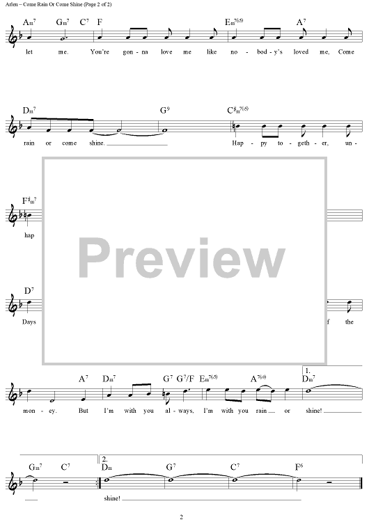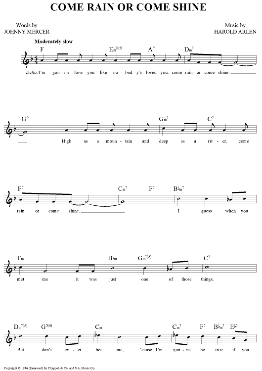 Digital Sheet Music for Come Rain Or Come Shine by Harold Arlen, Johnny Mercer scored for Lead Sheet; id:457797