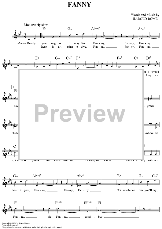 Digital Sheet Music for Fanny by Harold Rome scored for Lead Sheet; id:442520