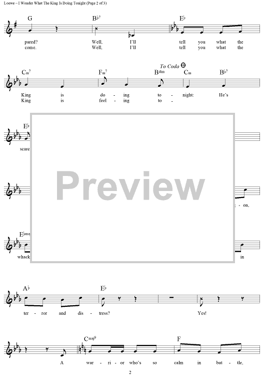 Digital Sheet Music for I Wonder What The King Is Doing Tonight by Frederick Loewe, Alan Jay Lerner scored for Lead Sheet; id:441800