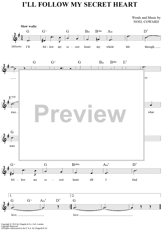 Digital Sheet Music for I'll Follow My Secret Heart by Noel Coward scored for Lead Sheet; id:442514